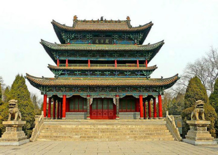 亦稱無(wú)量祖師殿,為皇城主殿。北宋乾德年間(963—967)修建,元代改崇佛閣奉祀釋迦佛。明代嘉靖年間韓王夫人郭氏捐資,命遣內(nèi)散官馬英祈許,將大殿擴(kuò)建為5楹,建筑面積約200平方米,殿頂覆蓋鐵瓦。殿內(nèi)正中設(shè)高1.5米、長(zhǎng)寬各6米的神龕,奉祀彩塑金身真武帝君坐像1尊。龕臺(tái)正中設(shè)置銅鑄玄武,左右彩塑周公桃花站像各1尊。龕臺(tái)左右側(cè)下方各塑龜蛇化身站像1尊。殿內(nèi)左右彩塑四大靈官站殿神。清康熙初年王輔臣應(yīng)吳三桂兵變據(jù)平?jīng)稣坚轻,殿廡毀壞嚴(yán)重,十五年(1677),龍門洞道士苗清陽(yáng)前來(lái)住持募化重修,1982年列為縣級(jí)文物保護(hù)單位。