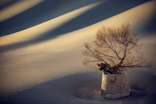 夫妻柳裁植于1971年,是同根系長出的兩株相互依偎的旱柳,被稱為“夫妻柳”。它們在鳴沙山月牙泉陪伴下共度無數(shù)寒暑歲月,成為游人駐足留戀的大漠一景。1997年,一場沙塵暴襲擊了歷經(jīng)劫難的“夫妻柳”,夫妻柳不幸從根部折斷。后在工作人員的精心呵護(hù)下,夫妻柳起死回生夫妻柳重現(xiàn)枝繁葉,形如一對戀人繁育出了更為強盛的下一代。