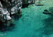 大封門(mén)——一個(gè)鮮為人知的名字,就象一位養(yǎng)在深閨人未識(shí)的少女,婀娜多姿,嫵媚而溫柔。大封門(mén)森林公園層林疊翠,延綿的山峰云纏霧繞,斷崖絕壁間溪水潺潺。這大封門(mén)乃南昆山之支系,溪流眾多,從大壩上行,較大者即有5條之多,小溪小瀑則不計(jì)其數(shù)。而附近較出名處則有白水寨、石門(mén)、中國(guó)第一長(zhǎng)瀑等。大封門(mén)森林公園一巨石,經(jīng)千年風(fēng)化和流水的沖刷,竟鬼斧神工般形成一個(gè)“大烏龜”,它靜靜地潛在碧潭清流之中,頭微微仰起,注視著茫茫群山,它的背上是堅(jiān)硬的石塊,一絲泥土也沒(méi)有,卻出奇地長(zhǎng)出一棵松樹(shù)來(lái)。它的旁邊還有龜仔、龜?shù),充滿神奇色彩,使人浮想聯(lián)翩……