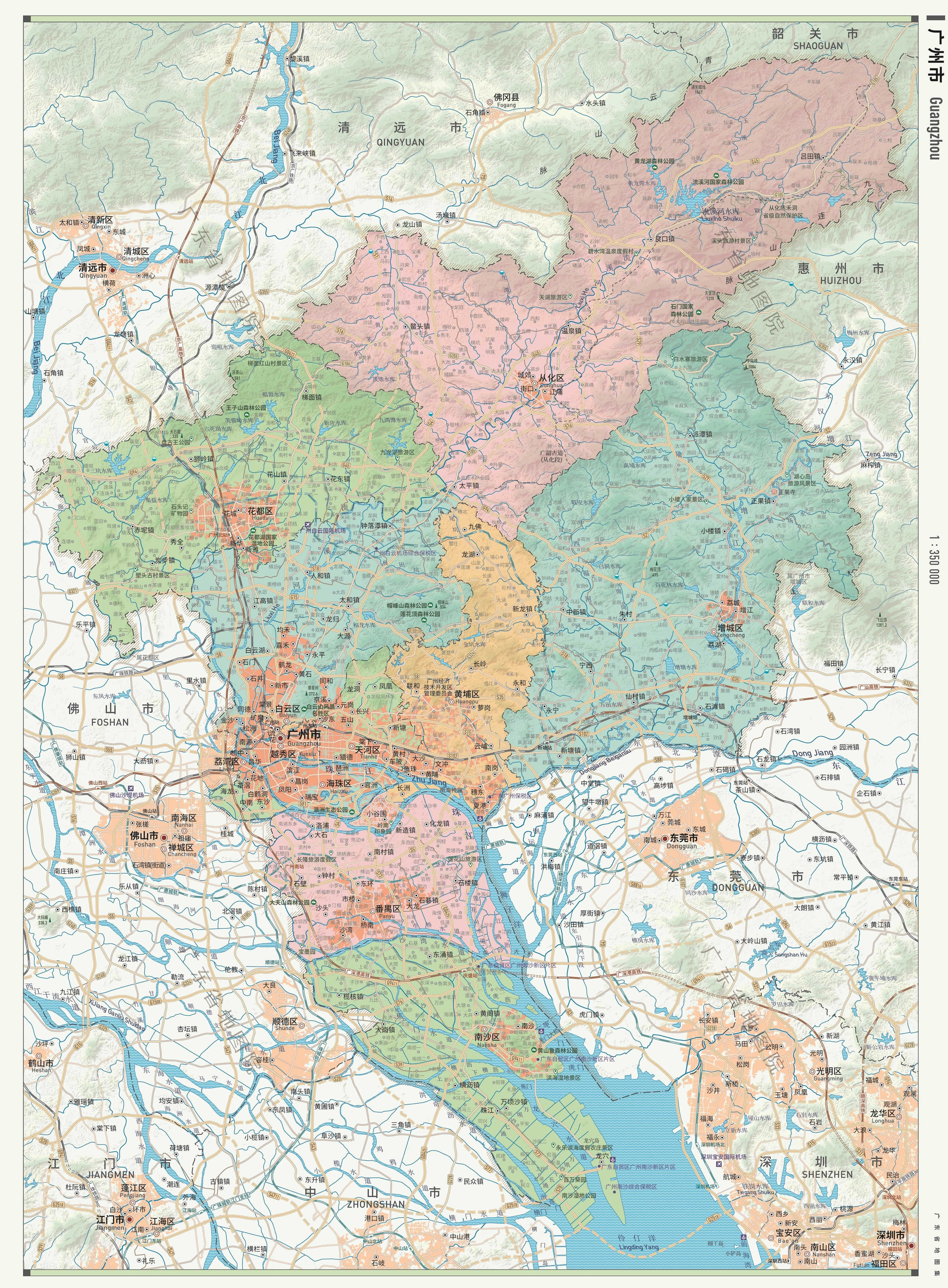 廣州市地處中國大陸南方,廣東省的中南部,珠江三角洲的北緣,接近珠江流域下游入海口?偯娣e7434.4平方千米。東連惠州市博羅、龍門兩縣,西鄰佛山市的三水、南海和順德區(qū),北靠清遠(yuǎn)市的市區(qū)和佛岡縣及韶關(guān)市的新豐縣,南接?xùn)|莞市和中山市,與香港、澳門特別行政區(qū)隔海相望。