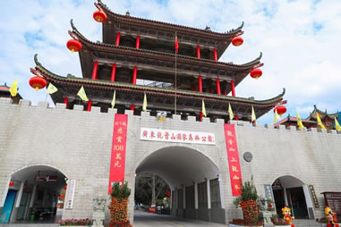 采用清代古城樓建筑風(fēng)格,飛檐翹角,氣勢恢宏,體現(xiàn)了中國古典建筑之美。內(nèi)設(shè)游客服務(wù)中心和售票處,是游客進入觀音山景區(qū)所看到的第一道靚麗風(fēng)景。
