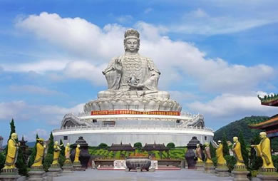 觀音像位于海拔488米的觀音山頂,是公園內(nèi)集游、行、購、食等為一體的大型游客集散地,為廣大游客和信眾到觀音山的必游之地。世界最大花崗巖石雕觀音圣像,用極具靈氣的,公園建成時,擇極具靈氣的花崗巖,靠人工雕琢,歷時三載,終請成凈高三十三米、重達三千多噸的世界最大花崗巖觀世音菩薩圣像。