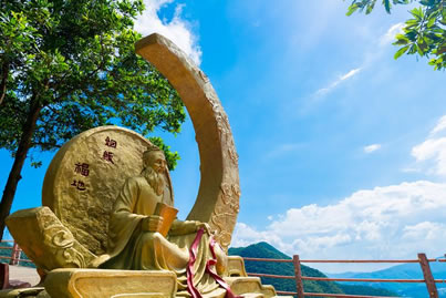 大月老,別名柴道煌,民間又稱月下老人、月下老兒,宋州宋城人,是中國民間傳說中主管姻緣的仙人,對人間男女以紅繩相系,確定姻緣。觀音山上的月老臺位于吉祥路中段,高3米,由坐式老人及半月組成,在月下倚布囊、坐于階上、向月檢書的老人正是執(zhí)掌天下之婚牘,維系千里之姻緣的月老。