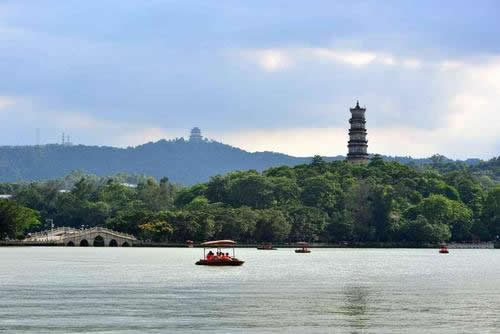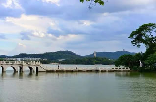 惠州西湖面積遼闊,湖岸彎環(huán)曲折,湖上洲嶼點綴、三面青山環(huán)抱。湖泊東西最寬處達4公里,南北最長達6公里,面積最大時有10平方公里,湖區(qū)面積約80平方公里。在煙波浩淼的湖面上,堤橋如帶,把湖面分割成五大部分,素有“五湖六橋”之稱。北宋大文學(xué)家蘇東坡贊惠州“山水秀邃”。這里是廣東著名的5A級國家風(fēng)景名勝區(qū)和旅游勝地。