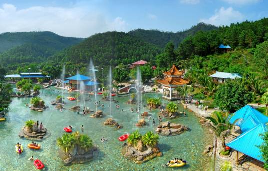 帝都溫泉,位于“中國溫泉之鄉(xiāng)”廣東省恩平市,池水面積達3200平方米,有三十多處自噴溫泉,日流量為6000立方米,其溫泉水溫高達73℃,水質晶瑩幼滑,并含有偏硅酸、氟、氫、硫等多種有益于人體健康的元素,是世界少有的滑溫泉。