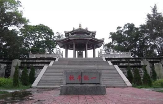 方飯亭位于汕尾市海豐縣城北郊五坡嶺上,坐西北向東南,占地960平方米。亭為六柱八角重檐攢尖頂,通高9米;亭內(nèi)覆蓋著一座廡殿頂古石亭,上刻“方飯亭”三字,內(nèi)豎立石碑刻有文天祥半身畫像,像上方陰刻小篆《衣帶銘》:“孔曰成仁,孟曰取義,惟其義盡,所以仁至,讀圣賢書,所學(xué)何事,而今而后,庶幾無愧!”兩側(cè)亭柱刻有明潮州狀元林大欽所撰對聯(lián):“熱血腔中只有宋,孤忠?guī)X外更何人!蓖で坝形鍖34級臺階通于嶺下草埔,當(dāng)中橫置著“一飯千秋”的石刻碑,兩旁豎立著歷代重修碑記,周圍竹木蔥蘢。該亭始建于明代正德十年(1515年),為紀(jì)念南宋丞相文天祥抗元在五坡嶺不幸被捕而建。亭前原有主建筑“表忠祠”和“忠義牌坊”,于民國二十七年(1938年)秋遭侵華日軍飛機炸損。1955年,海豐縣政府撥款重修方飯亭,并加蓋八角大亭予以保護。1957年5月,被縣政府頒布為縣級文物保護單位。