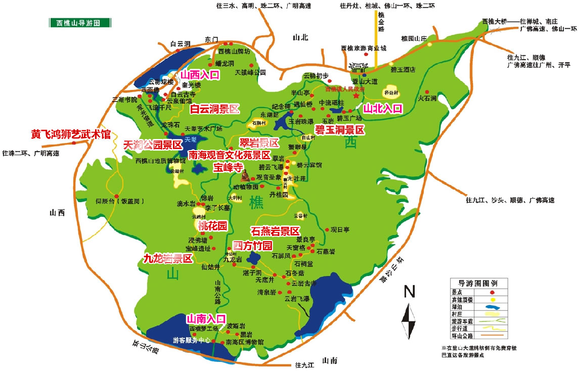 西樵山風(fēng)景名勝區(qū)位于中國廣東省佛山市南海區(qū)的西南部,景區(qū)有72山峰,形成眾多水景,232處泉眼,28處瀑布;山間古有34景,以“云崖飛瀑”、“無葉清泉”等泉瀑命名的就有10處;此外還有42洞和無數(shù)的奇崖怪壁,例如九龍巖、冬菇石、燕巖等。