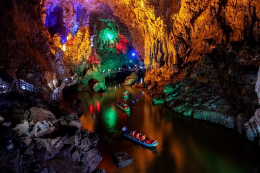廣西平果通天河景區(qū)又稱“敢沫巖”、“紅軍巖”,是一個溶洞暗河型景區(qū),位于平果市黎明鄉(xiāng)208省道旁,地處平果平治河巖溶自治區(qū)級地質(zhì)公園核心。通天河景區(qū)于2013年被評為國家AAAA景區(qū)。景區(qū)地理位置優(yōu)越,東距大化紅水河28千米,可連接大化七百弄等景點(diǎn);北距巴馬縣63千米,208省道直達(dá),適合與巴馬連線旅游,可連接“東巴鳳”各景點(diǎn);西可連接百色、德天瀑布、通靈大峽谷等景點(diǎn);南距南寧190千米,可連接南寧、北海等景點(diǎn)。