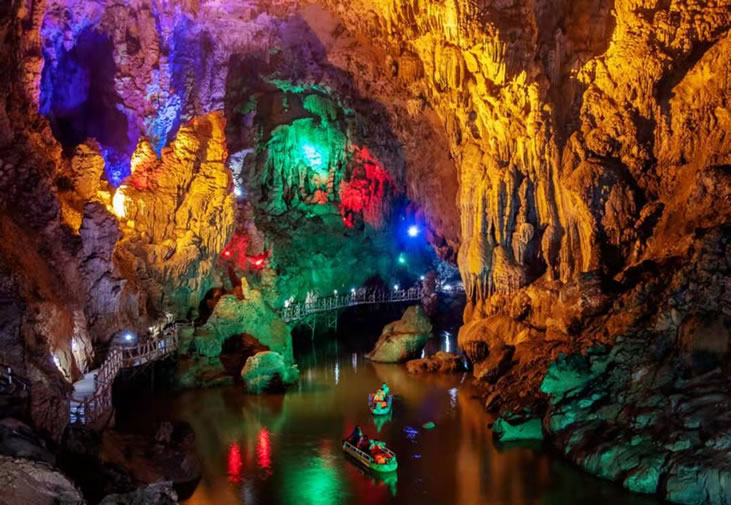廣西平果通天河景區(qū)又稱(chēng)“敢沫巖”、“紅軍巖”,是一個(gè)溶洞暗河型景區(qū),位于廣西百色市平果縣黎明鄉(xiāng)208省道旁。溶洞最大特點(diǎn)是面積大,總面積超過(guò)10萬(wàn)平方米,其中“天上人間”面積3.3萬(wàn)平方米;空氣好,6處洞口空氣通暢;空間高,最高的“九九洞天”99米;景點(diǎn)多,石筍、石柱、石幔、石瀑、石盾、石梯田、石鐘乳千姿百態(tài),鬼斧神工,20米以上石柱26余根;景觀(guān)奇,“神奇龍脊”長(zhǎng)達(dá)60多米,鎮(zhèn)洞之寶“金銀雙塔”各高達(dá)30多米。通天河景區(qū)于2013年被評(píng)為國(guó)家AAAA景區(qū)。景區(qū)位于廣西西南部中心地帶,東距大化紅水河28公里,可連接大化七百弄等景點(diǎn);北距巴馬縣63公里,208省道直達(dá),適合與巴馬連線(xiàn)旅游,可連接“東巴鳳”各景點(diǎn);西可連接百色、德天瀑布、通靈大峽谷等景點(diǎn);南距南寧190公里,可連接南寧、北海等景點(diǎn)。