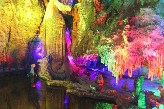 龍宮仙境景區(qū)具有代表性的景群有:金龍迎賓廳、龍宮仙境廳、仙人遺址廳等。龍宮仙境是典型的喀斯特地貌自然溶洞,常年恒溫15—20攝氏度,總面積16800平方米。