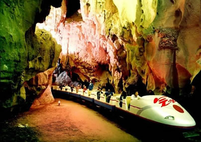 冠巖地下河游覽區(qū)是桂林有名的旅游溶洞之一,本世紀(jì)九十年代初,桂林華之冠旅游開發(fā)有限公司對(duì)冠巖進(jìn)行了全方位科學(xué)合理性的開發(fā),按高起點(diǎn)、高標(biāo)準(zhǔn)設(shè)計(jì)建立了多種游覽方式,洞內(nèi)共有5種游覽方式:步行(行程約1000米);乘坐觀光滑道(洞內(nèi)滑道來回約500米);乘觀光電梯(電梯高約36米,亞洲觀光第一梯),乘坐洞內(nèi)小火車(小火車長(zhǎng)約30米,可載客108人,行程約500米);在地下河浮橋中漫步(行程約500米,洞中有世界巖洞第一瀑,地下河瀑布)。多種現(xiàn)代游覽設(shè)施與洞內(nèi)景色相輔相成,使冠巖成為國內(nèi)獨(dú)具特色和韻味的水陸空游覽洞穴。
