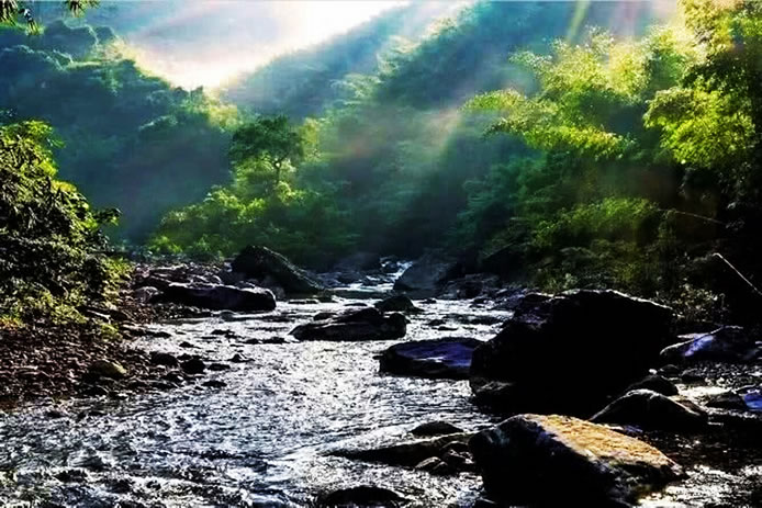龍?zhí)渡止珗@,內(nèi)群山連綿、峰巒疊嶂、千峰如屏、劈地摩天、怪石林立、神奇峻秀。連綿的群山猶如上下飛舞的綠龍。山的脈絡(luò)主次分明,層次豐富。遠(yuǎn)眺群山前擁后簇,高矮參差,綿綿不斷地伸展開去。最高峰大平山頂海拔1158米,相對(duì)高度780米,四周眾山簇?fù),呈現(xiàn)出一派頂天立地的雄偉氣勢(shì)。