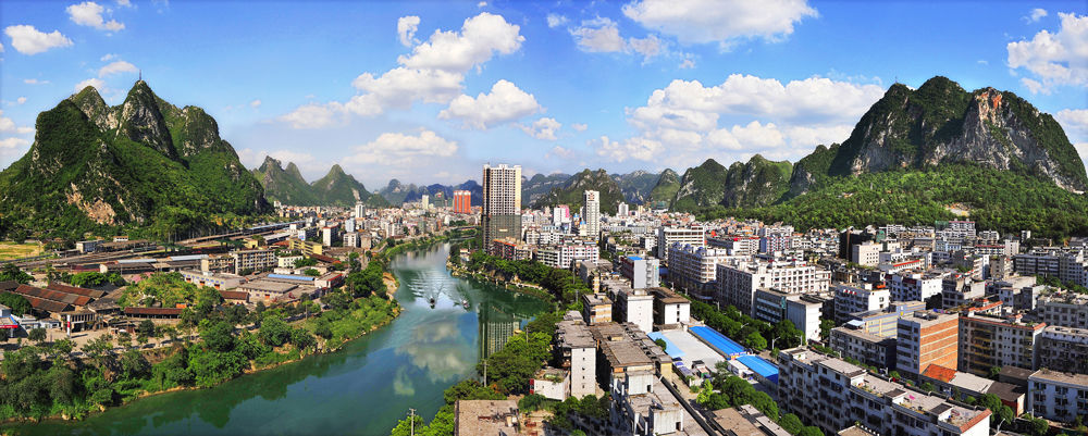 地理 金城江區(qū)系云貴高原余脈地帶,地勢自西北向東南傾斜,一般海拔為400-600米,最高海拔為1114米。屬桂西北邊陲要地,區(qū)境東界宜州市,西鄰東蘭縣,南接都安瑤族自治縣,北連南丹縣與環(huán)江毛南族自治縣。全境東西長68千米,南北寬62千米,總面積2340平方千米, 耕地面積23.5萬畝。