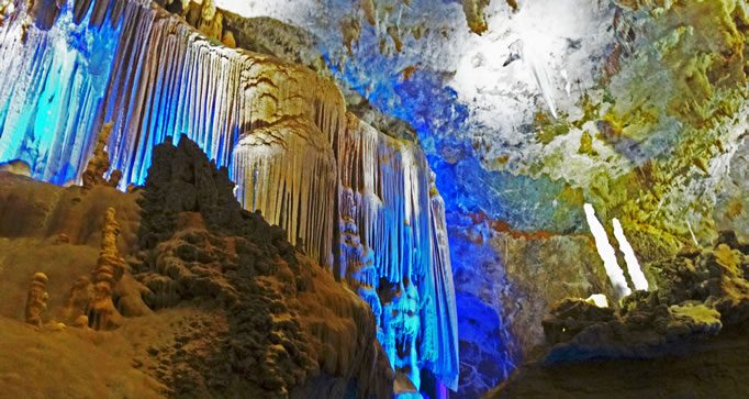 水晶宮位于縣城西北的那社鄉(xiāng)大洛村牛洞屯,距縣城約等43千米,交通便利。水晶宮發(fā)育在峰叢洼地谷地巖溶地貌區(qū),地形起伏大,洞口位于巖溶峰簇的山坡上,高出現(xiàn)代侵蝕面約150米。 水晶宮以潔白純凈、密集分布的石毛發(fā)、卷曲石、石花等景觀為顯著特色,珍惜景觀。洞內(nèi)空氣負氧離子含量很高,達到每立方厘米36000-70000個,為洞外的5-10倍。 水晶宮為廊道狀的中型洞穴,洞穴基本上順巖層層面面發(fā)育,除數(shù)處大廳外,總體上洞道高低起伏不大。據(jù)初步調(diào)查,水晶宮的長度總長度1000多米,寬8至50米,高10至80米。洞底局部有軟式和細沙土沉積物。水晶宮內(nèi)的鐘乳石類有重力水趁機累的鵝管、鐘乳石、石筍、石柱、石帶、石旗和各類石幔、石瀑布、石盾等;非重力水晶沉積類的石毛發(fā)、卷曲石、石花等數(shù)十種,形態(tài)多彩多姿,雪白純凈,玲瓏剔透,集天下藝術(shù)珍品于一洞,且正在生長之中,極具觀賞價值和科學(xué)探究價值。