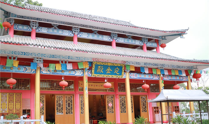 定金山禪寺位于定金山上,定金山禪寺由此得名。定金山禪寺是當(dāng)時田州周邊的一大名寺,在20世紀(jì)初土改時一度被撤。后又在60年代的“文化大革命”破“四舊”的政治運動中再度被毀。80年代后期,定金山禪寺由群眾集資再度重建。建成的定金山禪寺以其規(guī)模宏大、殿堂巍峨、道場清凈成為當(dāng)今巴馬的一座名寺,每逢農(nóng)歷的月初一和十五,定金山禪寺香客絡(luò)繹不絕,香火不斷,成為巴馬的一道獨特的旅游風(fēng)景線。