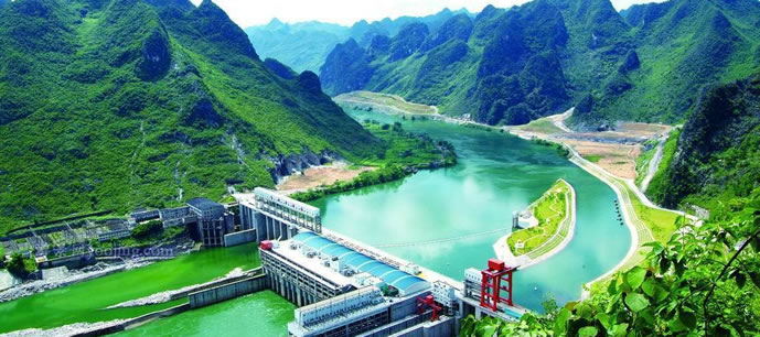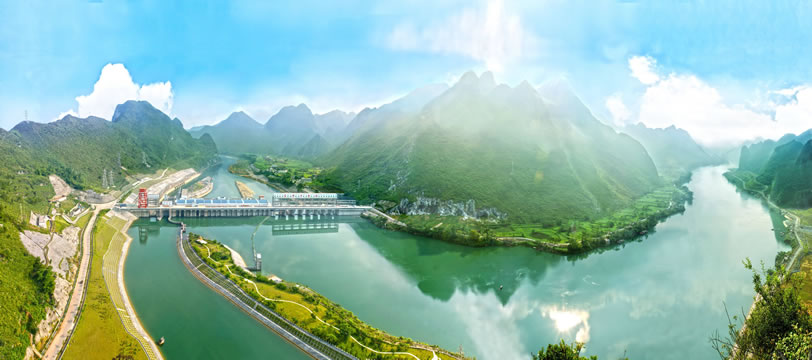 樂(lè)灘(惡灘)水電站庫(kù)區(qū)的紅水河源出于云南省沾益縣的南盤(pán)江,經(jīng)貴州流入廣西,是廣西以壯族為主體的少數(shù)民族的母親河、太陽(yáng)河。紅水河是中國(guó)少有的水電資源。正在擴(kuò)建中的樂(lè)灘(惡灘)水電站預(yù)算投資39.7億元,裝機(jī)容量為60萬(wàn)千瓦,年均發(fā)電量為35億千瓦時(shí),是紅水河上的十個(gè)梯級(jí)水電站之一。