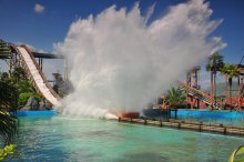 急流泛舟:急流泛舟是模擬美國(guó)科羅拉多大峽谷宏偉壯麗的造型修建而成,當(dāng)您乘坐皮筏船深入科羅拉多河谷挑戰(zhàn)急流,穿過(guò)瀑布,沉醉于大峽谷壯麗的景色時(shí),印第安人突然來(lái)襲,緊接著是一個(gè)您絕對(duì)逃不過(guò)的陷阱,三個(gè)大酒桶從山頂上倒下幾百加侖的大水,越過(guò)大橋后是連番重炮攻擊,炮聲四起,水花四濺,這時(shí)讓您只想趕快逃離,不過(guò)西部的勇士總是還會(huì)再來(lái)挑戰(zhàn)。泛舟全長(zhǎng)約400米,運(yùn)用高科技設(shè)備控制水流流速,制造急流旋渦。船速達(dá)3-4米/秒,這一驚險(xiǎn)的歷程只要3分鐘,每艘船可乘坐8名勇士。