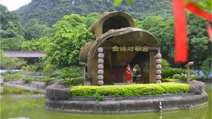 劉三姐大觀園內(nèi)有電影《劉三姐》主要鏡頭畫面的修復(fù)再現(xiàn)。景區(qū)內(nèi)游客們能親睹劉三姐電影中的主要演員及我國(guó)著名電影導(dǎo)演蘇里先生,還可親身體驗(yàn)廣西壯、侗、苗、瑤的民俗風(fēng)情生活情趣。同時(shí)還能觀賞到極罕見(jiàn)的夜景,壯觀的大水幕,五彩繽紛的噴泉,彎彎的藍(lán)月亮,迷人的夢(mèng)幻歌圩,幽雅的恬靜的踩月小徑,可漫步入踩月洞,電影中的劉三姐激光塑像,讓游客一飽眼福。