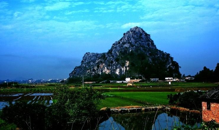 在靈山縣三海鎮(zhèn)梓崇村馬鞍山,山為喀斯特孤峰,形似馬鞍,山下有東勝巖、葡地巖和盡頭巖三洞。 1960年,廣東師院、廣東省文物管理委員會考古隊和中國科學(xué)院古脊椎與古人類研究所賈蘭坡、顧玉珉、顧閻等在東勝巖發(fā)現(xiàn)1塊顳骨的鼓室部、兩顆牙齒和一段左側(cè)股骨上段,在葡地巖發(fā)現(xiàn)1塊頂骨和3塊額骨,東勝巖還出土熊的化石和鈣化蝸牛,葡地巖出土中國犀牛、野豬、鹿和;,專家研究鑒定為更新世末期的人骨化石,命名為靈山人化石出土地點(diǎn),此外,還在石背山洪窟洞古人類遺址,出土1塊頂骨、1塊髖骨、1枚上臼齒、2枚板齒,代表老年個體、屬舊石器時代,在石塘鄉(xiāng)鐘秀山滑巖洞遺址,發(fā)現(xiàn)10塊頭骨、70枚牙齒、1塊髖骨、1件穿孔石珠和一些網(wǎng)紋、繩紋陶片,研究鑒定為新石器時代的人骨。 1962年2月廣東省靈山縣綠水公社綠水村社員在一處山坡上挖出了一件銅鼓,廣東省文物管理委員會得知后,派員至現(xiàn)場作了調(diào)查,并將銅鼓運(yùn)回廣州,發(fā)現(xiàn)銅鼓的山崗很高,約二百余米,銅鼓就埋在半山坡距地面約三四十米的地方,在山崗周圍沒有發(fā)現(xiàn)什么古代文化遺址或墓葬,附近也沒有找到什么共存遺物,只在銅鼓內(nèi)殘存的泥土中找到了一枚唐代的開元通寶,說明這只銅鼓是在唐代或以后才被埋入土中,銅鼓很大,面徑81、通高47厘米,除足部稍。