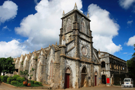 圣堂景區(qū)位于潿洲島盛塘村,是全國重點文物保護單位,“晚清四大天主教堂”之一。教堂由法國巴黎外方傳教士建于1853年,歷時10年建成,主體建筑保存較為完好,是中西文化融合共生的歷史見證。整座建筑主要取材于海底珊瑚沉積巖,運用周密的力學設(shè)計建成,是典型的文藝復(fù)興時期法國哥特式教堂,外表高聳的羅馬式尖塔有著“向天一擊”的動勢,造成一種“天國神秘”的幻覺,堪稱別具一格。