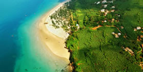 潿洲島的海灘以寬闊平坦的沙質(zhì)海灘為主,一般寬150~300米,沙礫層厚4~8米,平鋪于玄武巖之上層部岸斷間或有玄武巖出露。潮間帶一般比較寬闊,最寬者可達150米。潮下帶寬約60米,有珊瑚分布 。珊瑚的下面就是礁坪。被波浪打碎的珊瑚殘體很容易與殼沙礫等堆積膠結(jié)成海灘巖。潿洲島北港一帶的海灘巖從古瀉湖一直延伸到潮下帶上部,覆蓋于玄武巖之上。