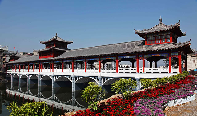 長壽橋位于蒙山縣城內(nèi)的湄江上,始建于明代,取名為西關(guān)橋,后改為鎮(zhèn)龍橋,水毀久廢。清康熙二十年(1681年),知州丁亮工重建,改名興龍橋,后又被洪水沖毀。嘉慶六年(1801年),知州玉麟將橋址移至城南重建。