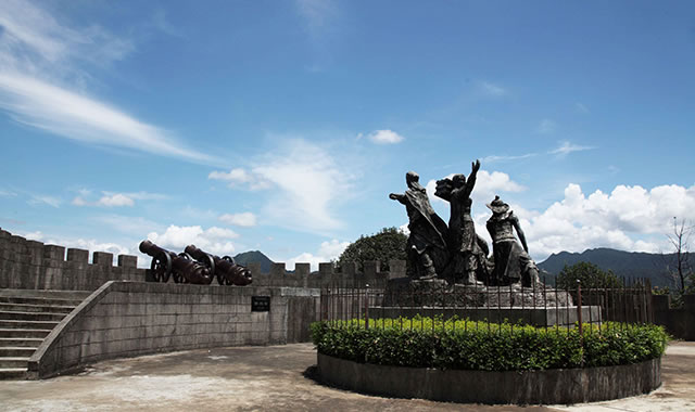 西炮臺(tái)公園位于蒙山縣城西面的團(tuán)冠嶺上。團(tuán)冠嶺曾經(jīng)是太平天國西王蕭朝貴駐軍之地,在這里筑城墻、設(shè)大炮,北拒來犯的清軍。2001年,縣政府投資1200萬元,在該地建設(shè)成西炮臺(tái)公園。