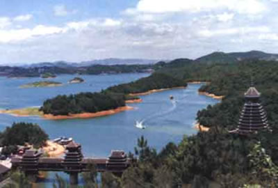 貴州國(guó)家級(jí)風(fēng)景名勝區(qū)之一的紅楓湖風(fēng)景名勝區(qū)是連貴州本地人都十分愛(ài)去游覽的地方,它不僅僅因它的湖泊面積大更因它的湖上星羅棋步的小島而吸引著本地的外地的游客。它的水域總面積為57.2平方公里,蓄水量可達(dá)6億立方米,為貴州高原人造湖之最,據(jù)專(zhuān)家考證出來(lái)的數(shù)據(jù)顯示,紅楓湖比北京的十三陵水庫(kù)大12倍,相當(dāng)于6個(gè)杭州西湖。