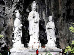 觀音洞,全國(guó)最大的洞中寺院,總體面積達(dá)2萬(wàn)多平方米,最大的特點(diǎn)就是所有的殿堂都是天然溶洞。人工雕刻佛像32尊,其中觀音像高達(dá)12.6米,主殿上有一天然神似觀音的鐘乳石,天然和人造的佛像渾為一體。天下名山僧占多,而天然溶洞寺院實(shí)屬罕見(jiàn),其規(guī)模居全國(guó)之首。