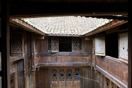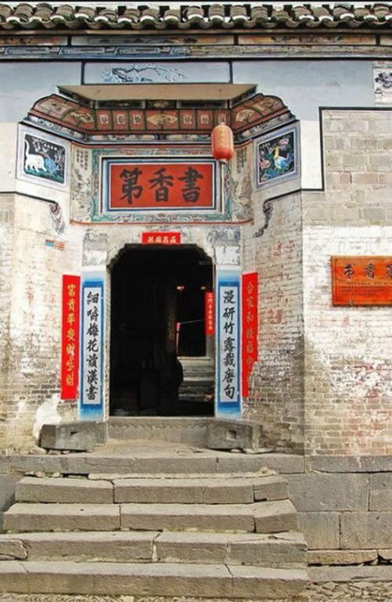 書香第位于南門大街,建于清末,書香弟意取文化之家,讀書之族,以知書識禮為立家之本。三間三進(jìn)二天井,雙重檐出水,堂屋窗格為各式花窗,門前放有一對石鎖,鏨刻有“連中三元”、“連升三級”字樣,防火缸鐫刻有古代兵器戟等,作為練武人家的象征,大門門板用堅硬的木材青杠做成,十分牢固,門后地面安有青石鑿成的頂門槽,屋角備有頂門扛,供夜晚頂門使用,是隆里的典型民居。