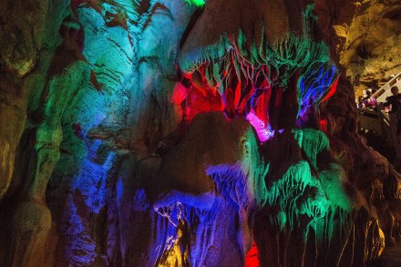 洞內滿布玲瓏剔透,形態(tài)各異的鐘乳石,千姿百態(tài)。讓人流連忘返,其中較著名的景點有:”猴子撈月“、”藏經(jīng)閣“、”千年等一回“、”春滿人間“等。