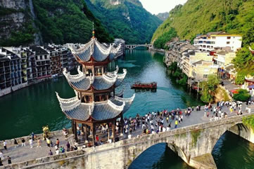 舞陽(yáng)河由龍王峽、諸葛峽、西峽組成,有小三峽之稱,以高峽平湖、瀑泉飛流、喀斯特為主體。