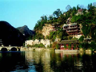 青龍洞古建筑群始建于明洪武二十一年(1388年),迄今已有六百多年的歷史了。青龍洞集佛教經(jīng)殿、道教廟堂、儒家書院、會(huì)館為一體的佛、道、儒、俗古建筑群,全國(guó)獨(dú)有的中原建筑與苗侗吊腳樓干欄式巧妙結(jié)合的古建筑群號(hào)稱“南方懸空寺”。