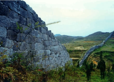 經(jīng)過600多年風(fēng)雨侵蝕,露出部分的石面全部呈青黑色,與城垣周圍石質(zhì)各異。據(jù)專家考證,砌筑城垣所用石料,全從山下采集,鑿成料石,然后一塊一塊運(yùn)上山,整個(gè)工程浩大。