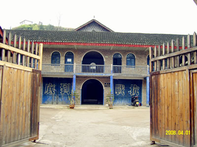 “和平村”是國(guó)民黨政府軍政部第二日軍俘虜收容所,設(shè)在鎮(zhèn)遠(yuǎn)衛(wèi)城十字街東側(cè)五云山下,原鎮(zhèn)遠(yuǎn)總兵署中營(yíng)衙門。前有巷道北通衛(wèi)城上北門,面臨濞陽(yáng)河,后依五云山,有衛(wèi)城南門通金堡苗鄉(xiāng),方圓面積50000平方米。仍保留著當(dāng)年“和平村”半圓拱形大門和高高的圍墻,并恢復(fù)了當(dāng)年的“新生班”、“研究班”、“訓(xùn)練班”、“啞子室”、“職員室”。