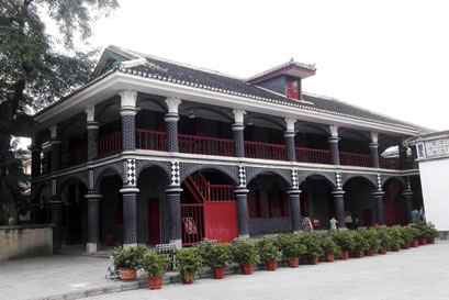 樓房座北朝南,為中西合璧磚木結(jié)構(gòu)建筑,一樓一底,歇山式屋頂,上開一“老虎天窗”廊柱卷拱護欄組合,整個主樓面闊27.75米,進深16.95米,通高12米,是當時遵義城里首屈一指的宏偉建筑。進入大門,穿過門廳和牌坊后,主樓呈現(xiàn)眼前。