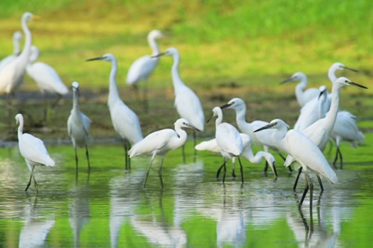 鷺鷥天堂位于海南省屋基村。村中三、四層樓高的三棵大榕樹和茂林修竹,成為萬(wàn)只白鷺生活的"天堂"。白鷺又稱鷺鷥,屬鳥綱鶴形目鷺科,是世界上受保護(hù)的珍禽之一。白鷺群棲于屋基村已有多年。每年臨近清明成群結(jié)隊(duì)飛來,12月以后分批離去,在此生活八、九個(gè)月之久。為便于觀鳥,村中修建了高達(dá)6層的觀鳥樓。