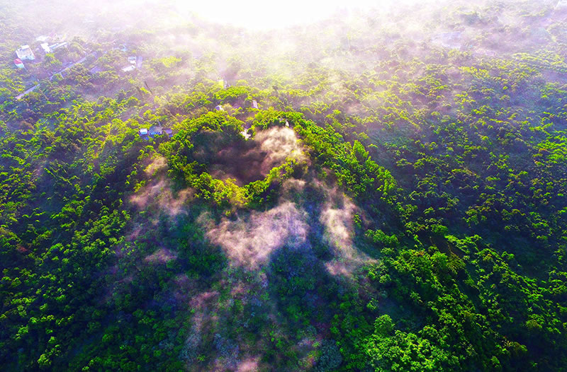 雷瓊?诨鹕饺菏澜绲刭|(zhì)公園,4A級景區(qū),世界地質(zhì)公園,國家地質(zhì)公園。位于?谑形髂鲜芥(zhèn),屬地塹一裂谷型基性火山活動地質(zhì)遺跡,也是中國為數(shù)不多的全新世(距今1萬年)火山噴發(fā)活動的休眠火山群之一,具有極高的科考、科研、科普和旅游觀賞價值。 地質(zhì)遺跡主體為40座火山構(gòu)成的第四紀(jì)火山群。園區(qū)在火山錐、火山口及玄武巖臺地上發(fā)育熱帶雨林為代表生態(tài)群落,植物有1200多種,果園與火山景觀融為一體,為熱帶城市火山生態(tài)的杰出代表?偯娣e108平方公里。主要景點(diǎn)有馬鞍嶺、雙池嶺、仙人洞、羅京盤等。