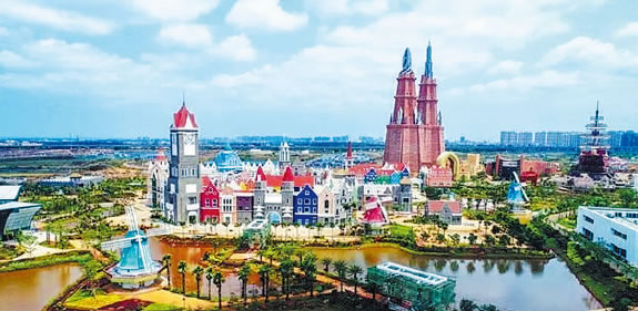 ?陂L影環(huán)球100奇幻樂園,位于海南省?谑行阌^(qū)椰海大道100號、西海岸長流鎮(zhèn)內(nèi),樂園一期占地837畝,總建筑面積168667.66平方米,由票務(wù)區(qū)、荷蘭區(qū)、中國區(qū)、德瑞聯(lián)合區(qū)、英國區(qū)、西班牙區(qū)6大園區(qū)組成,依托長影電影文化底蘊(yùn),邀請世界一流設(shè)計團(tuán)隊(duì)主持規(guī)劃,原汁原味地展現(xiàn)各國人文藝術(shù)與建筑特色。按四大主題分區(qū):絲路探險、光影奇境、魔幻谷、夢幻童世界。2020年5月掛牌為國家4A級景區(qū)。