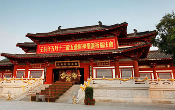 龍五爺財神殿位于三亞南山龍脈財穴之地,供奉著南海龍王第五子——圣衍,即“天下第一財神”——龍五爺。龍五爺財神殿由三個部分組成:一是招財大殿,開示信眾招財進寶;二是地宮財庫,護佑信眾守財,護財;三是。五爺萬佛閣,護佑信眾福祿傳世,富貴傳家。龍五爺財神招財大殿,開示信眾如何求財?shù)姆ㄩT。在龍五爺財神殿的大殿之上,有八根財柱,分別代表了龍五爺開示眾生如何正當求財?shù)陌舜蠓ㄩT,只有依五爺開示,樹立了正確的八大財富觀,才能求財如意。