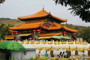 三亞南山寺位于三亞南山文化旅游區(qū)內(nèi),是一座仿盛唐風(fēng)格、居山面海的大型寺院。南山寺是已故中國佛教協(xié)會會長趙樸初親臨選址,經(jīng)國家宗教局批準,于1995年11月11日奠基,1998年4月12日建成,F(xiàn)有仿唐建筑仁王殿、天王殿、鐘樓、轉(zhuǎn)輪藏、東西爬山廊、東西配殿、金堂等建筑群,總建筑面積5500㎡。整個建筑氣勢恢宏,為中國近五十年來新建的最大佛教道場,也是中國南部最大的寺院。自古名寺出高僧,南山寺的方丈是86歲高齡的高僧新成大和尚,監(jiān)院是中國佛教協(xié)會副會長明生法師。南山寺第二期工程已啟動。按照規(guī)劃設(shè)計,第二期工程遵循古代大型佛教寺院方正劃一、主次分明的特點,將主要建筑集在中軸線上,在兩側(cè)設(shè)置12個不同功能的四合院。二期工程完成后,整個南山寺東西寬188米,南北長416米,共8個臺階總高差49米,總建筑面積4萬平方米。