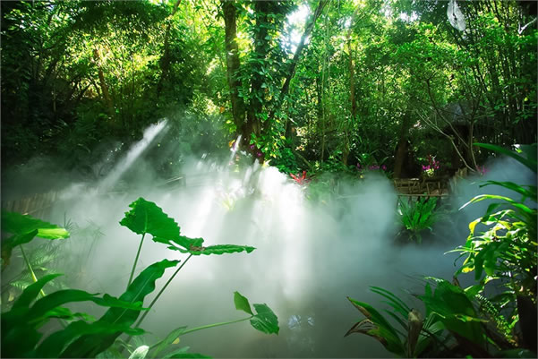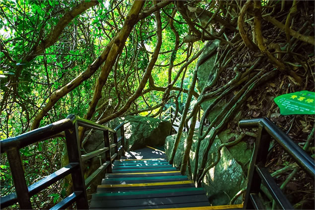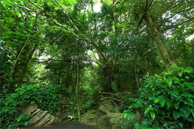雨林谷以展現(xiàn)原生態(tài)的熱帶雨林景觀為核心,匯集參天巨榕、百年古藤、黑桫欏、仙草靈芝、見血封喉、野生桄榔以及“高板根”“根抱石”“空中花園”“老莖結(jié)果”“植物絞殺”“藤本攀附”熱帶雨林的六大奇觀等。雨林谷是“天然氧吧”和負(fù)氧離子發(fā)生器,此地年平均溫度24度。雨林谷游覽通道由木棧道、野趣石階、吊橋組成,長(zhǎng)達(dá)3.5千米,分為大、中、小三個(gè)環(huán)行線路。