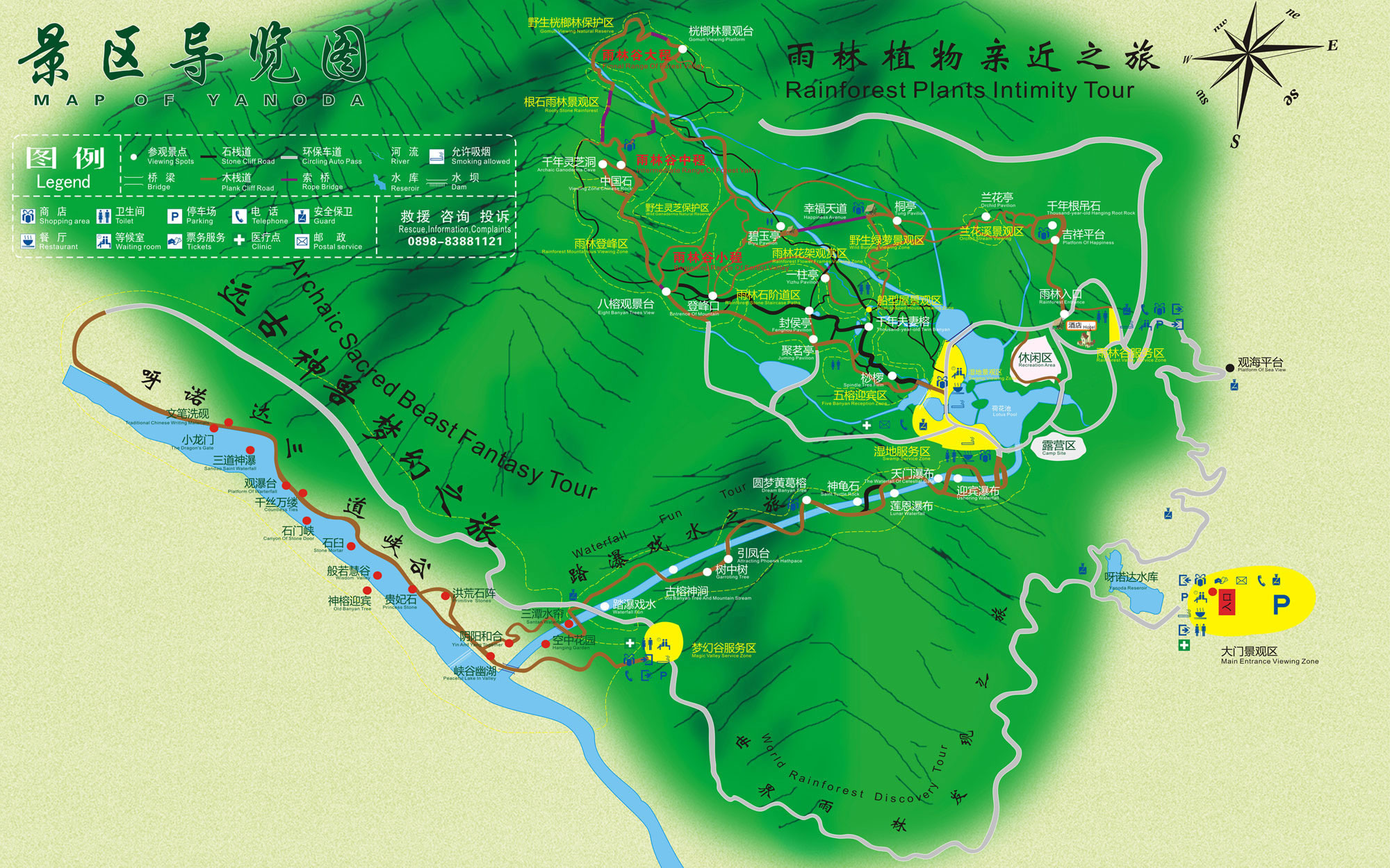 海南呀諾達(dá)雨林文化旅游區(qū)集熱帶雨林、峽谷奇觀、流泉疊瀑、黎峒風(fēng)情、熱帶瓜果、南藥、溫泉多種旅游資源于一身。主要有生肖廣場(chǎng)、雨林谷、夢(mèng)幻谷、三道谷、濕地等多個(gè)景觀區(qū),有呀諾達(dá)雨林、藥師峽谷、生肖廣場(chǎng)、啪魯?shù)弦巴馔赜?xùn)營(yíng)、呀呀呀熱帶果鄉(xiāng)、達(dá)達(dá)瑟黎苗博覽以及酒店、度假村等項(xiàng)目,是海南島五大熱帶雨林的濃縮,是具觀賞價(jià)值的熱帶雨林資源博覽館。