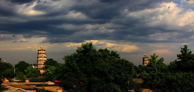 指矗立在城內(nèi)東北的雙塔。此雙塔建于遼代,這兩座塔的建成,民間有著動(dòng)人的傳說(shuō)。說(shuō)是有兩位巧手的姑嫂,一夜之間建成,實(shí)際上是佛教文化產(chǎn)物。所謂“雙塔晴煙”,一是說(shuō):在風(fēng)和日麗的天氣里,遠(yuǎn)看雙塔正象幾縷青煙在蔚藍(lán)的天幕上裊裊升起。二是說(shuō):在晴朗的天日,雙塔頂部周圍能看到幾縷青煙。有詩(shī)記:“豐碑猶自紀(jì)金遼,雙塔凌增逼九霄,佛火不明鈴語(yǔ)寂,晴煙幾縷逐飄”。
