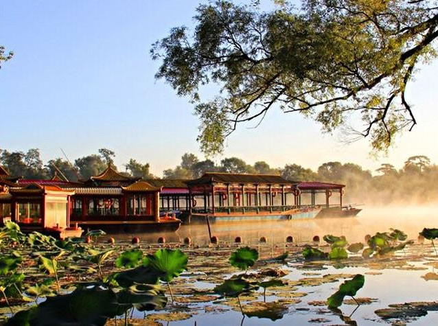 清康熙二十年(1681年),清政府為加強對蒙古地方的管理,鞏固北部邊防,在距北京350多公里的蒙古草原建立了木蘭圍場。每年秋季,皇帝帶領(lǐng)王公大臣、八旗軍隊、乃至后宮妃嬪、皇族子孫等數(shù)萬人前往木蘭圍場行圍狩獵,以達到訓練軍隊、固邊守防之目的。為了解決皇帝沿途的吃、住,在北京至木蘭圍場之間,相繼修建21座行宮,熱河行宮——避暑山莊就是其中之一。避暑山莊及周圍寺廟自康熙四十二年(1703年)動工興建,至乾隆五十七年(公元1792年)最后一項工程竣工,經(jīng)歷了康熙、雍正、乾隆三代帝王,歷時89年。在英法聯(lián)軍攻打北京時,咸豐皇帝就帶著一批大臣逃到了這里。