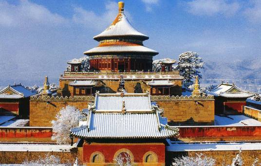 避暑山莊周圍的喇嘛教寺廟群是依照西藏、新疆喇嘛教寺廟的形式修建的,以供邊疆少數(shù)民族的貴族朝覲皇帝時(shí)禮佛之用。共12座,其中的8座由清政府直接管理,故被稱為“外八廟” 。廟宇按照建筑風(fēng)格分為藏式、漢式和漢藏結(jié)合式三種,它們?nèi)诤狭藵h、藏等民族建筑藝的精華,氣勢(shì)宏偉,極具皇家風(fēng)范。這些風(fēng)格各異的寺廟是當(dāng)時(shí)清政府利用宗教作為籠絡(luò)手段來團(tuán)結(jié)蒙古、新疆、西藏等地區(qū)少數(shù)民族而修建的。它們多利用向陽山坡層層修建,主要殿堂聳立突出、雄偉壯觀。