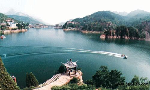 太行三峽—京娘湖 東太行山武安市京娘湖,據(jù)馮夢龍編《警世通言》記載,宋太祖趙匡胤千里送京娘曾路宿于此山中。京娘是山西永濟(jì)人,年方十七歲, 隨父母去曲陽燒香還愿遭劫,幸遇趙匡胤拔刀相救,千里護(hù)送,京娘感恩不盡,欲以終身相托。然而趙曰:“賢妹非是俺膠注鼓瑟,本為義氣千里相送,今若就私情與那個響馬何異?況施恩圖報非君子所為 。”京娘道:“恩兄高見,妾今生不能補(bǔ)報大德,死當(dāng)銜環(huán)結(jié)草。 ”于是京娘投湖自盡,(后被追封為貞義夫人)京娘湖亦由此得名。 湖面呈倒“人”字型,分東西兩支,水面2445畝,水深20-50米。中間 山島建有“山頂公園”清山綠水與藍(lán)天白云相互輝映,薈萃人典故, 使此地有“太行三峽”之美稱,尤其是巖壁上當(dāng)年趙匡胤“云崖寄志 ”的題詞手跡“欲出未來光辣撻,千山萬水如火發(fā)。須臾走向天上來 ,趕卻殘星趕卻月”。及其它歷史傳說,使景區(qū)更加神秘誘人。這里 層巒疊嶂,群峰竟秀,波光粼粼,林林茂盛。夏季炎熱之時,清爽宜 人,為避暑勝地。