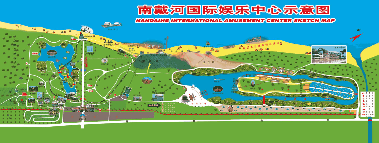 南戴河國(guó)際娛樂中心包含歡樂大世界、碧海金沙、金龍山、中華荷園、槐花湖五大區(qū)域。這里遠(yuǎn)離污染,環(huán)境清幽,空氣清新,植被蔥郁,完全具備了當(dāng)今國(guó)際海岸旅游的五大要素:海洋、沙灘、陽光、空氣、綠色。