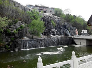 位于園內(nèi)英杰梁下,是南峪流域匯入漿水川的主要河道。原名南河溝,因抗大在此辦學期間,軍民同用一河水,故改名為軍民連心河。疊瀑從迎賓橋---廣場段,全長2000米,河寬15---30米,河中建有高0.8---1.5米攔河壩20道。