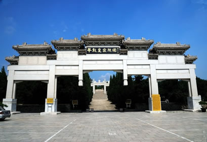 清崇陵位于泰陵的東南面約4公里的金龍峪,是我國(guó)現(xiàn)存帝陵中最后的一座。崇陵的建筑物數(shù)量與規(guī)模,完全依照同治的惠陵。建筑工巧,陵園儀樹中有罕見的羅漢松和銀松。地宮中合葬著光緒帝和隆;屎蟆